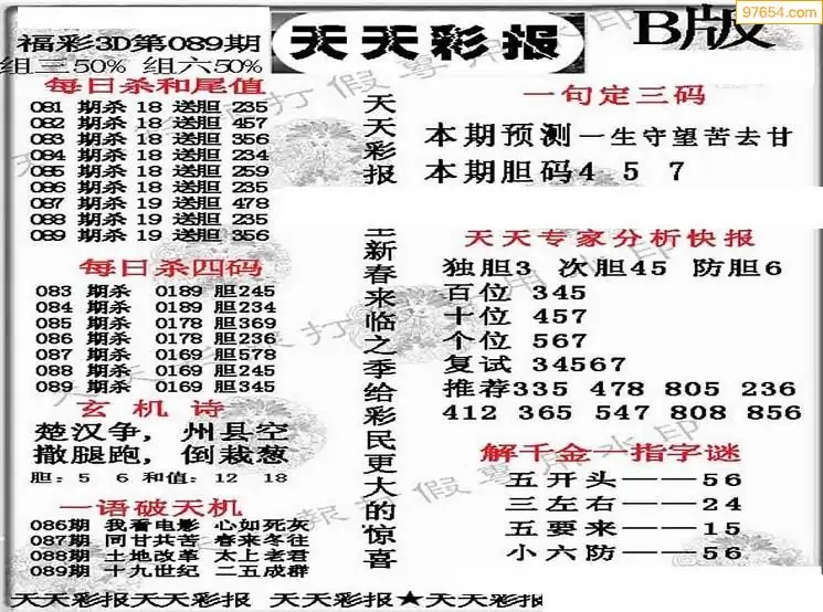 26089期3D天中原创预测字谜报