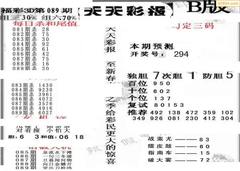 福彩3D089期天牛彩吧套图整合总汇