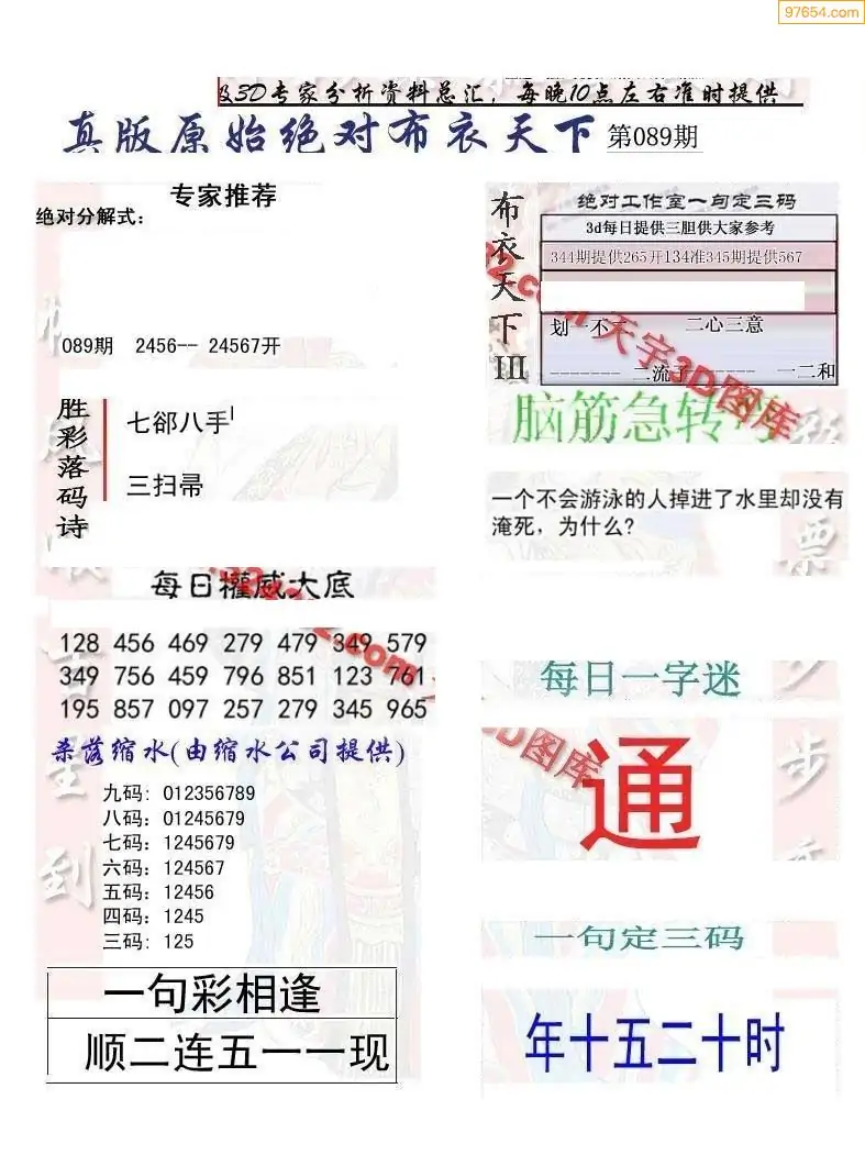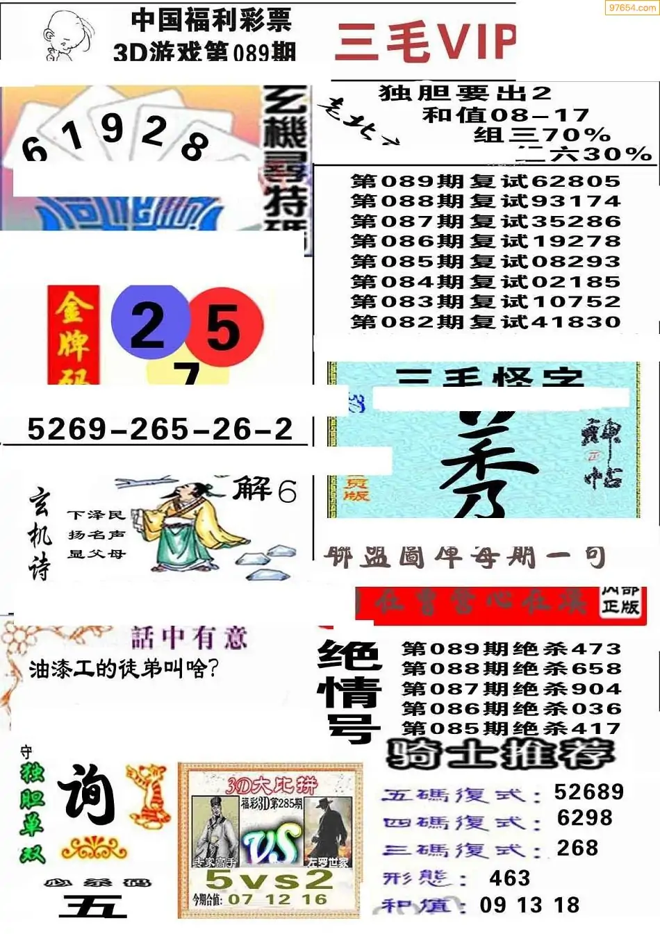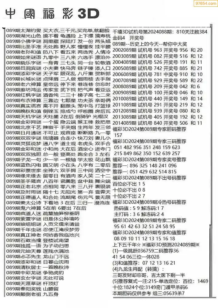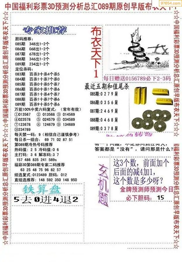 (3)2026089期3D预测总汇全图_福彩3d图谜字谜总汇