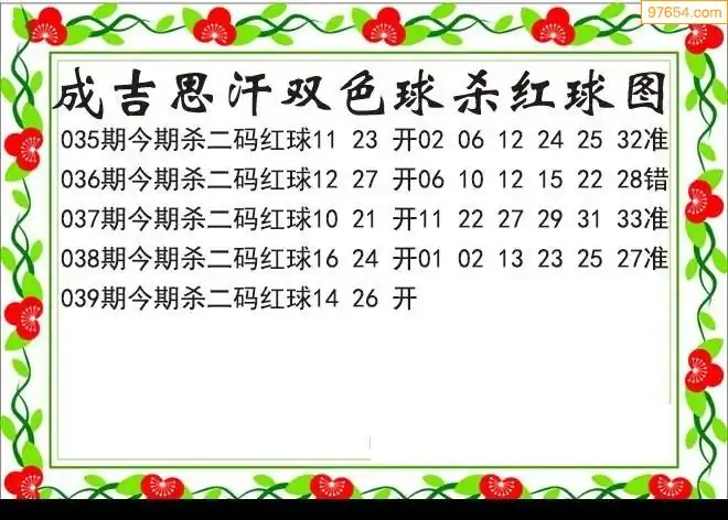 26年双色球039期成吉思汗杀二码红球图迷