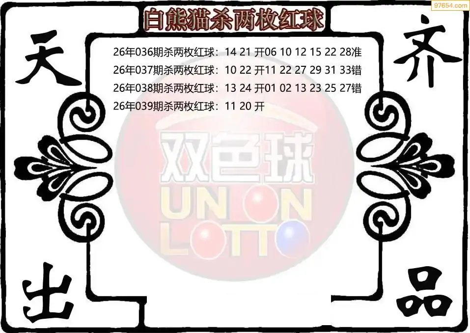 26年双色球039期白熊猫杀两枚红球图谜