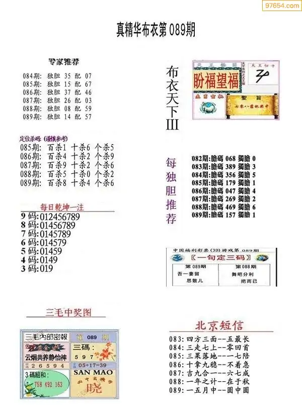福彩089期3d真精华布衣+布衣早报(转载)
