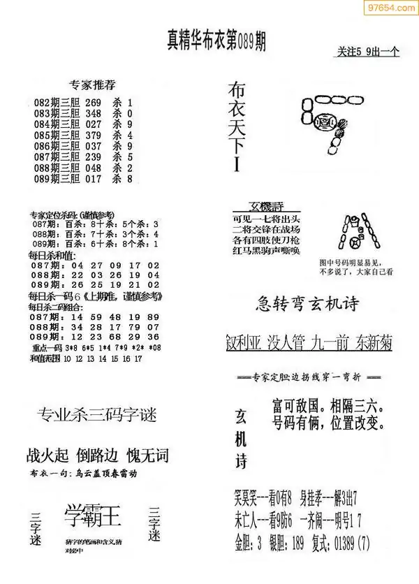 089期真版布衣神算专家推荐