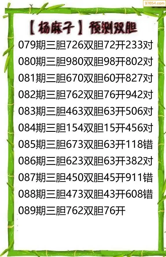 089期97654本站收集胆码出号预测