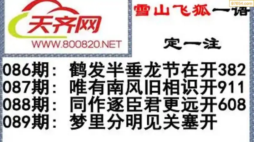 彩票3d字谜089期雪山飞狐一语定一注