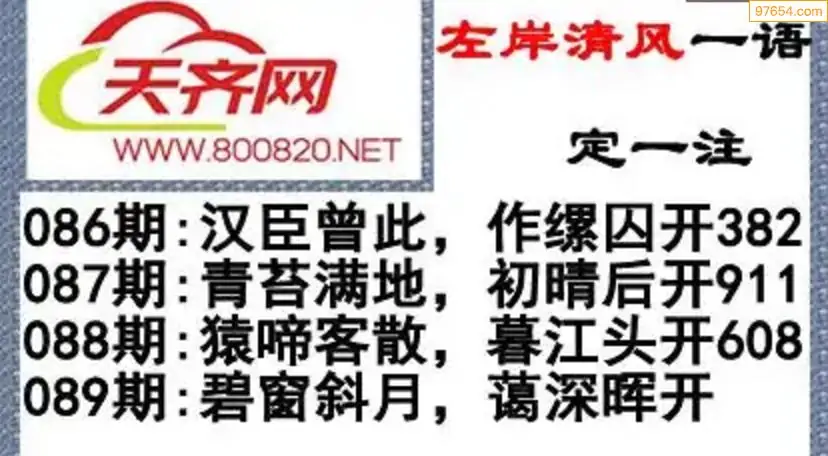 福彩3d左岸清风26年089期一语定一注