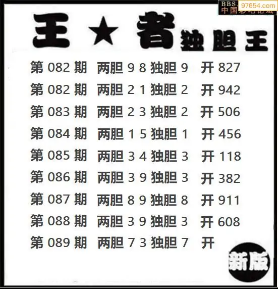 089期97654本站收集胆码出号预测