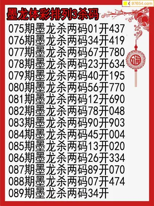 26年089期墨龙体彩排列三杀码图