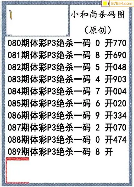 26年089期小和尚排列3杀码图