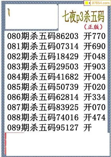 26年089期七夜今期排列3杀码图谜