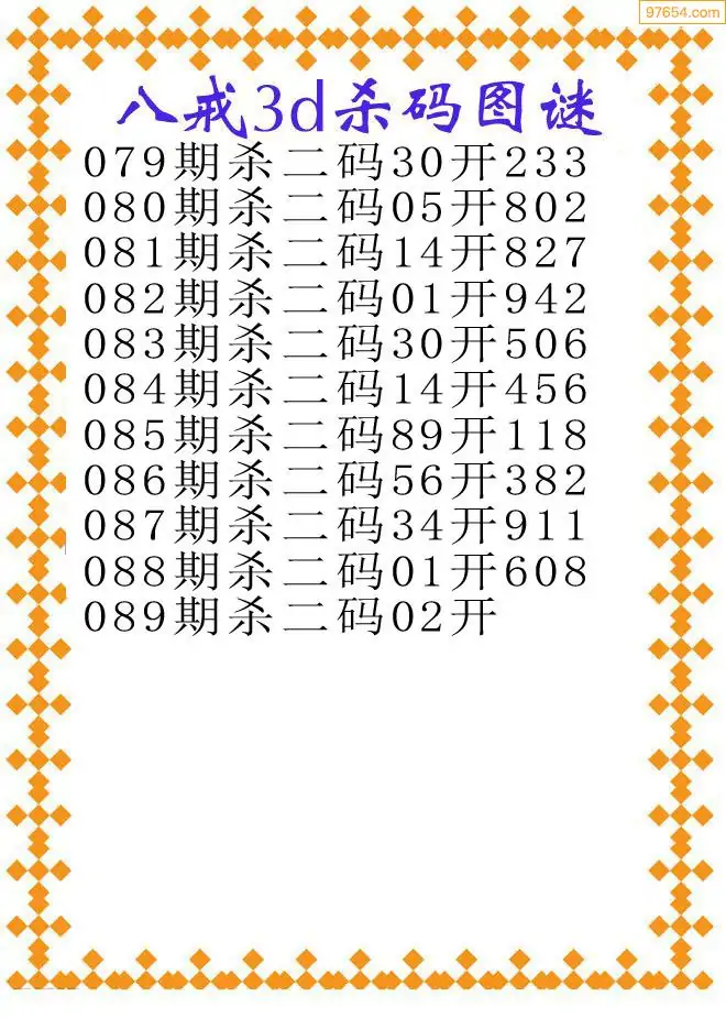 (3)2026089期3D预测总汇全图_福彩3d图谜字谜总汇
