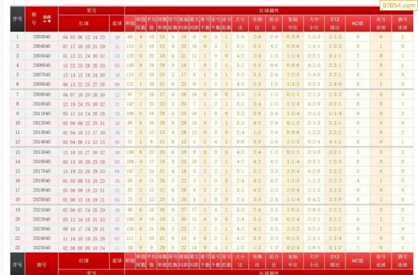040期双色球历史同期图表+走势图