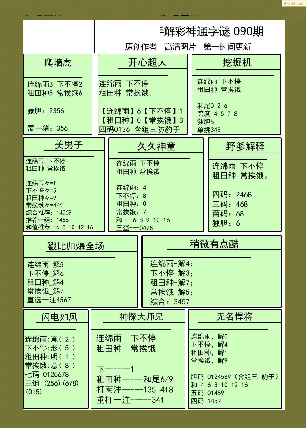 福彩3D090期天牛彩吧套图整合总汇