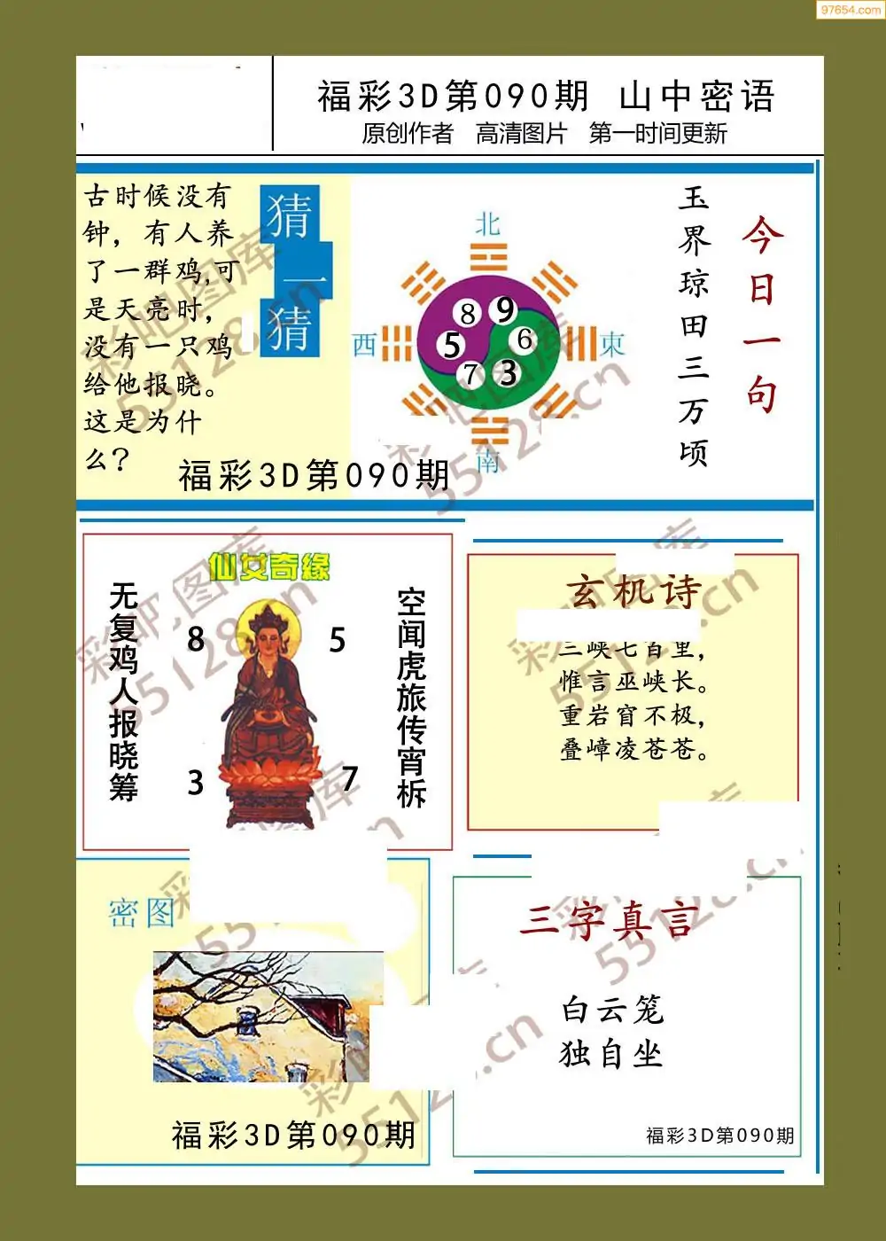 福彩3D26090期蓝仙子一句定三码图谜