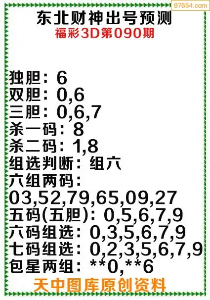 3d原创090期东北财神预测