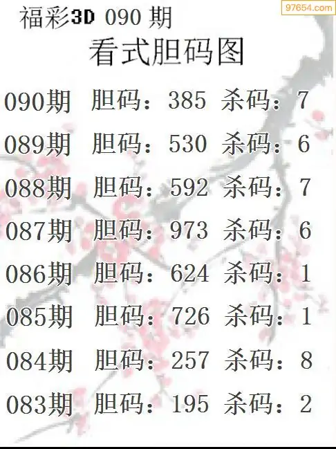 090期97654本站收集胆码出号预测