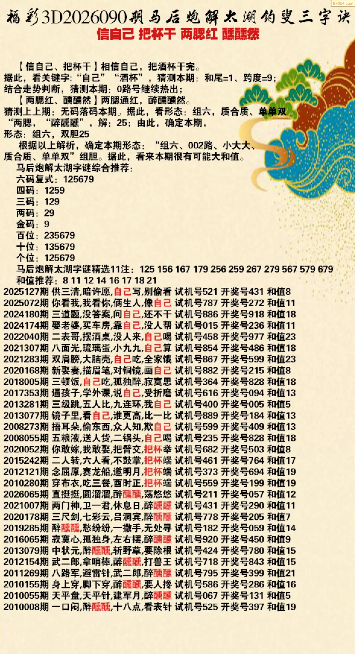 26年090期马后炮解3d太湖钓叟之 醺醺然