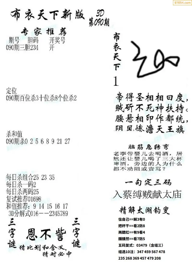 福彩090期3d真精华布衣+布衣早报(转载)