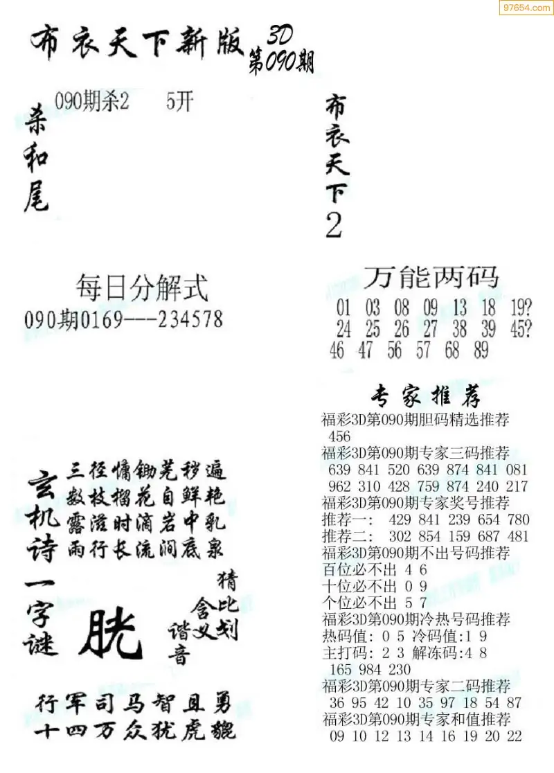 090期真版布衣神算专家推荐