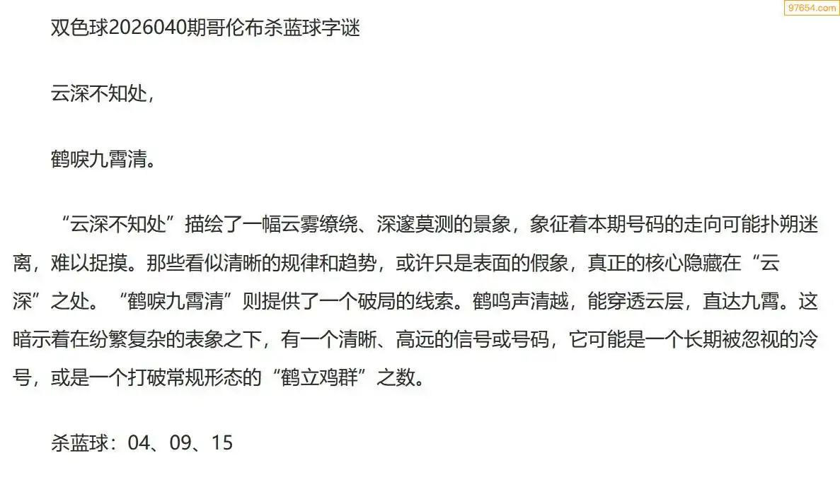 044期牛彩双色球字迷诗迷汇总(天中整理)
