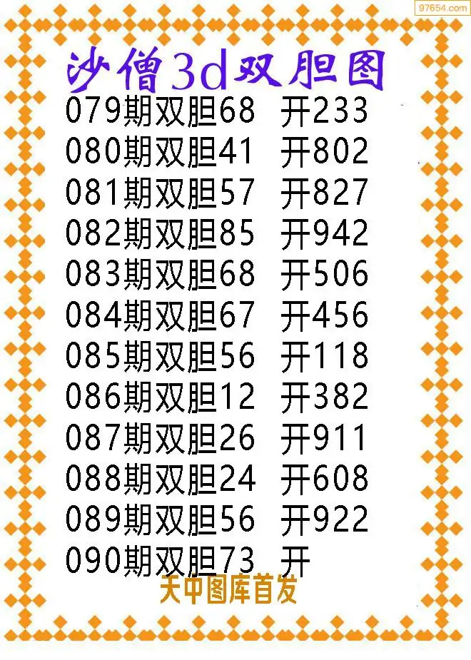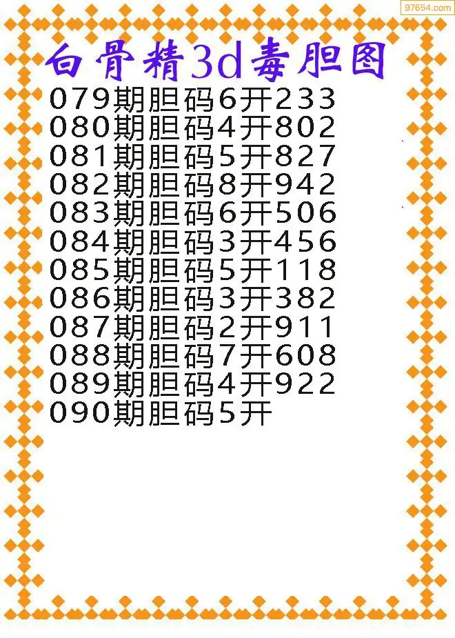 090期97654本站收集胆码出号预测