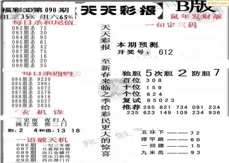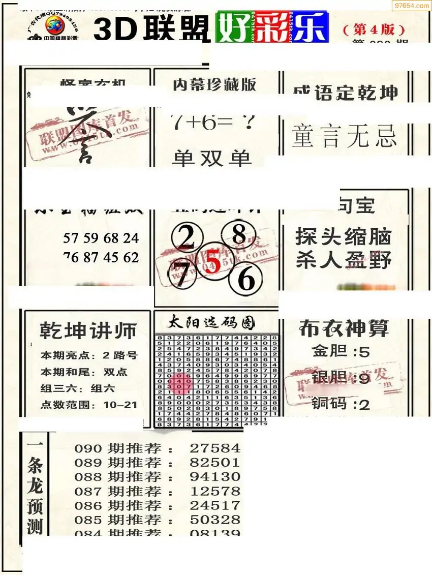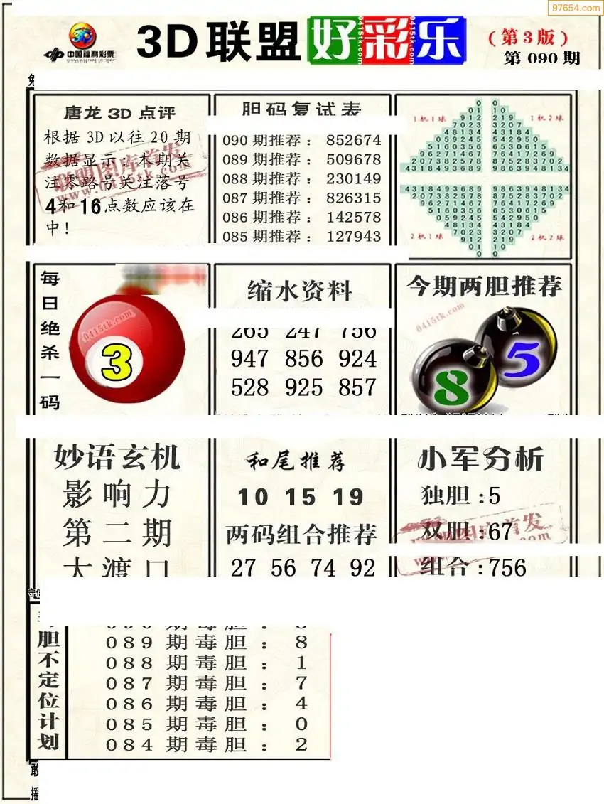 (8)26年090期今日3d各类彩报汇总