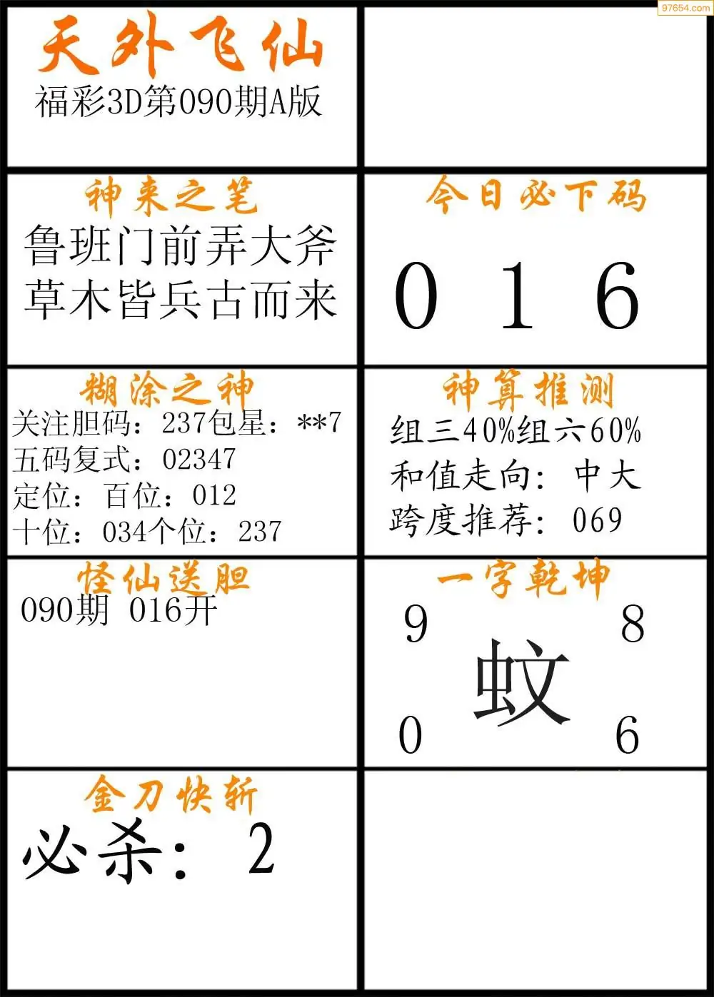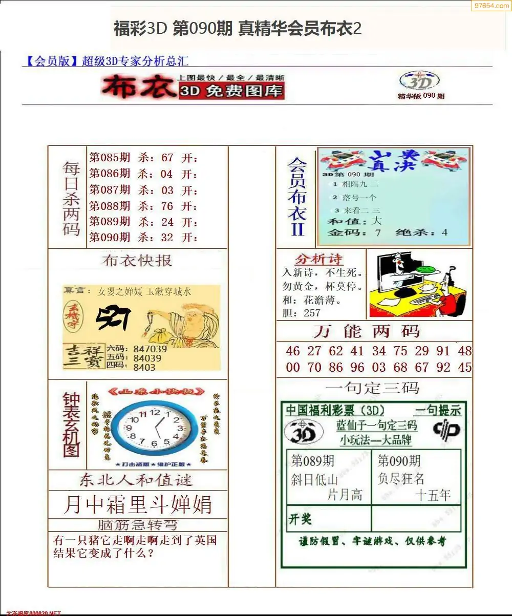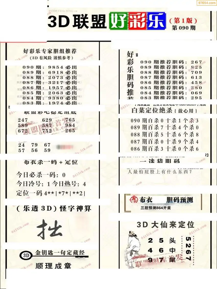 (2)26年090期本期3d图迷汇总_福彩3D图谜总汇图