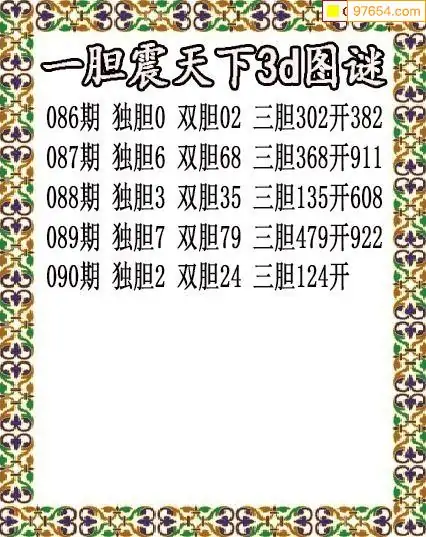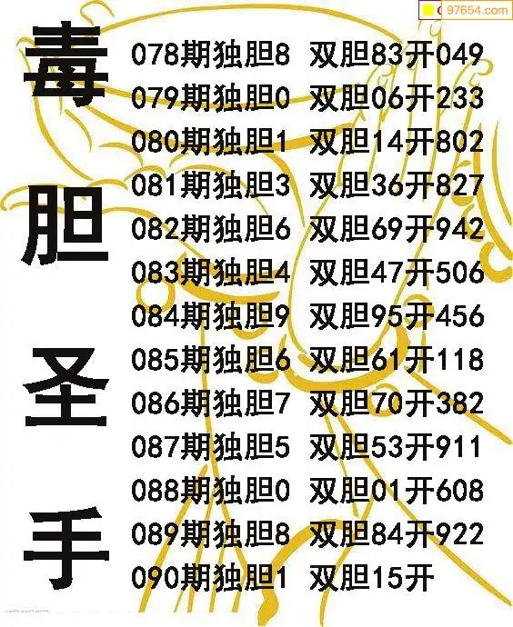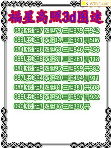 090期97654本站收集胆码出号预测