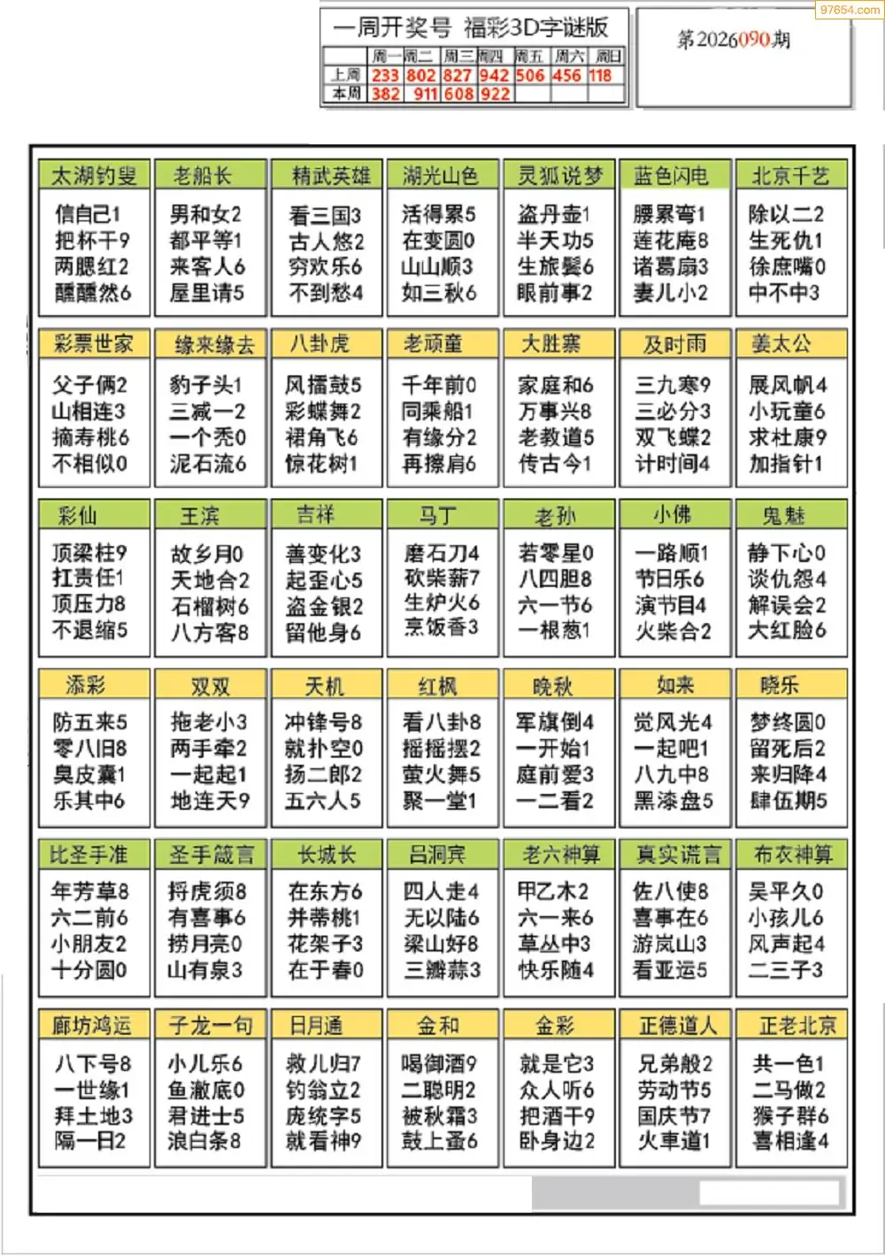 26年090期3d选号彩报图谜画谜