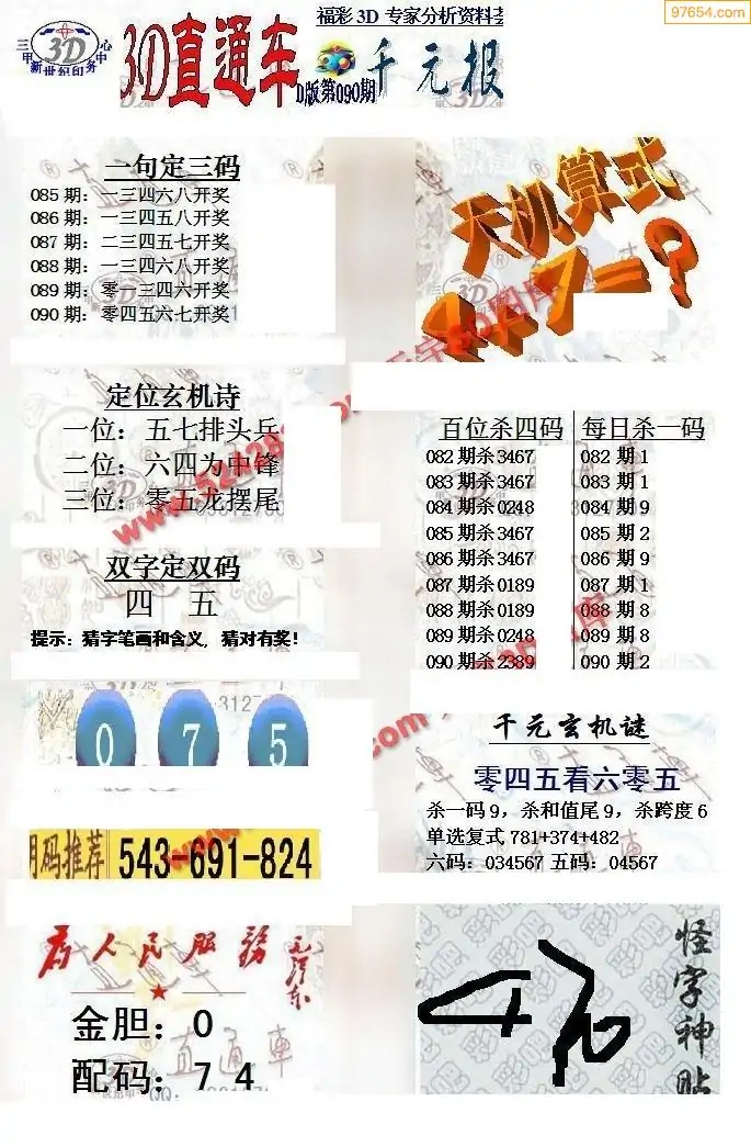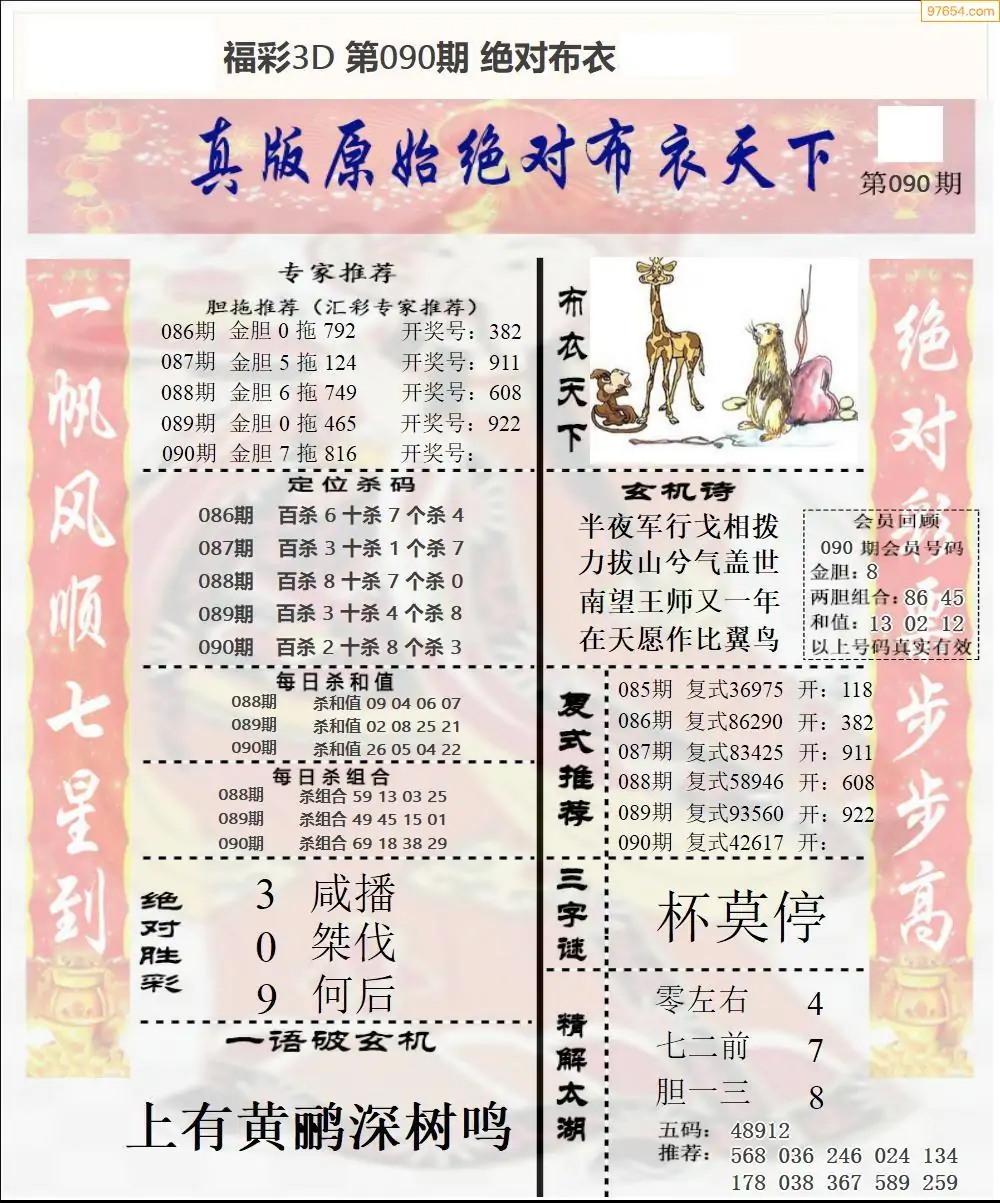 26年090期3d选号彩报图谜画谜