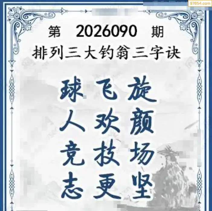26年体彩p3第090期大钓翁三字诀