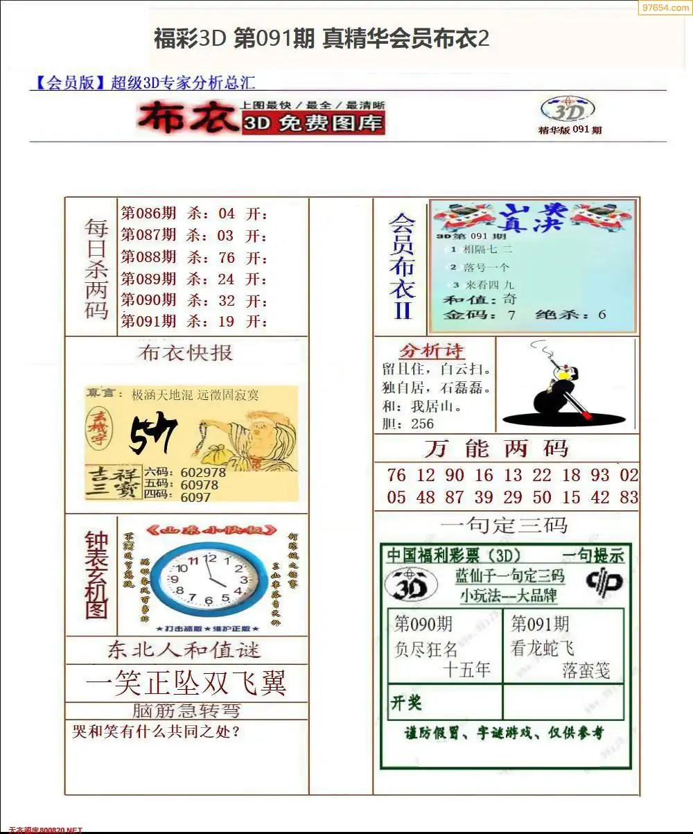 福彩091期3d真精华布衣+布衣早报(转载)