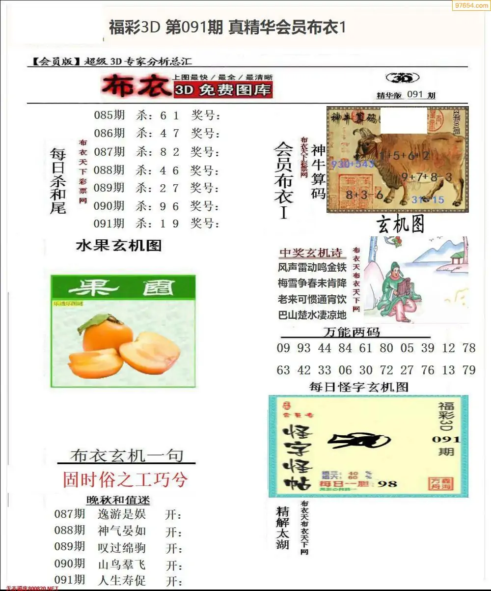 2026091期会员布衣3d图库