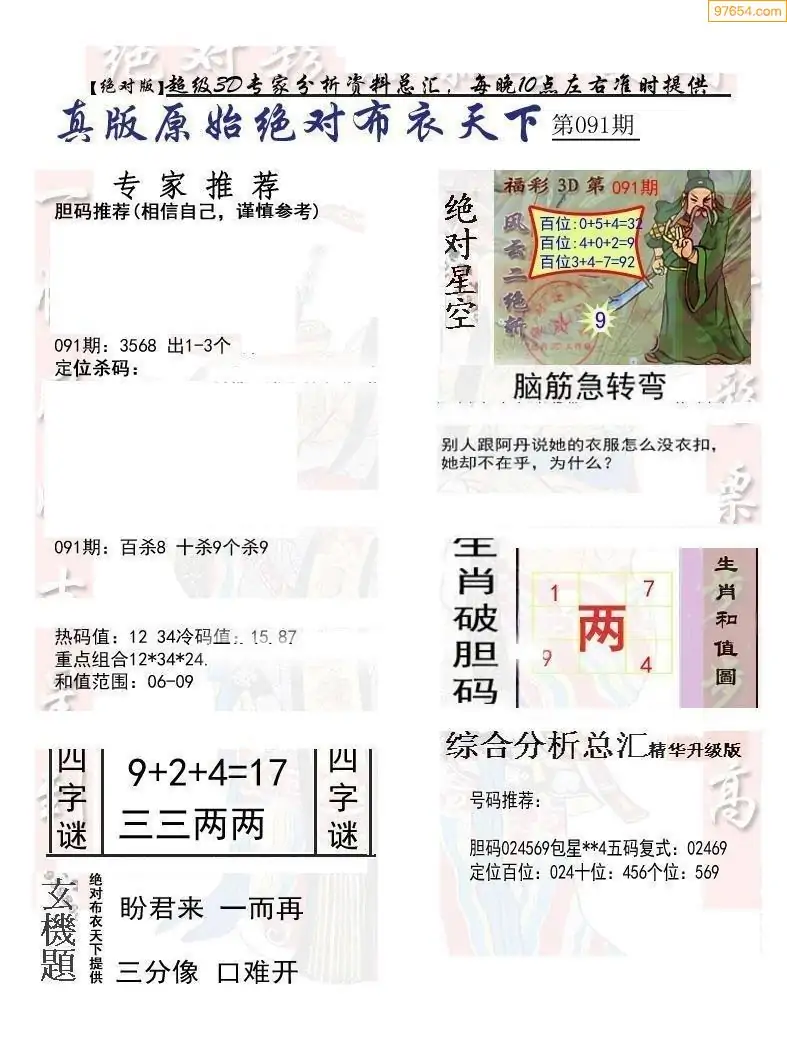 福彩091期3d真精华布衣+布衣早报(转载)
