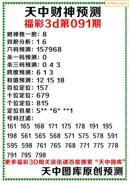 091期财神3d综合预测分析