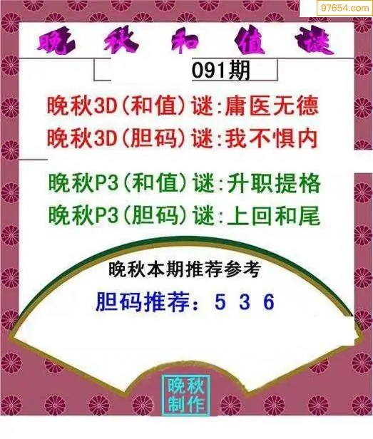 26091期晚秋和值谜胆码推荐