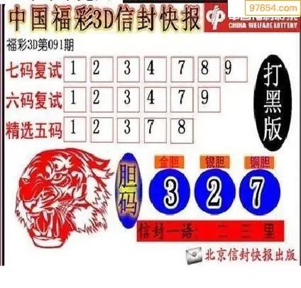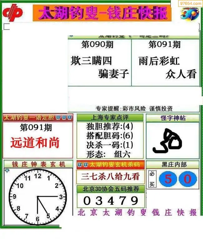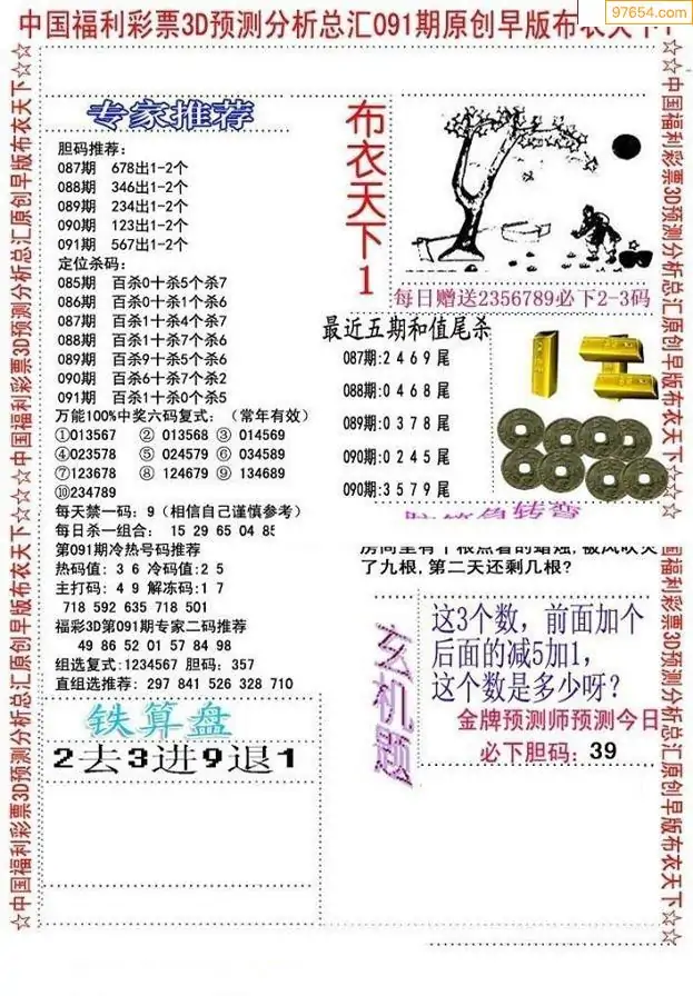 091期3D牛彩预测报+彩吧字谜报