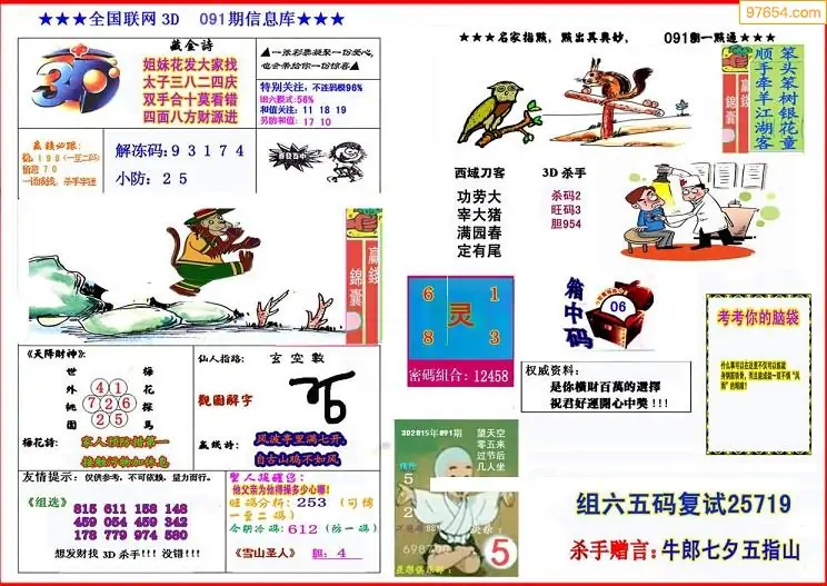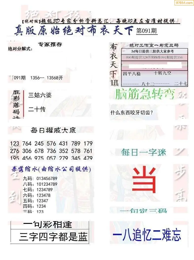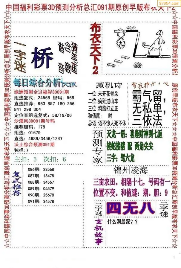 (3)2026091期3D预测总汇全图_福彩3d图谜字谜总汇