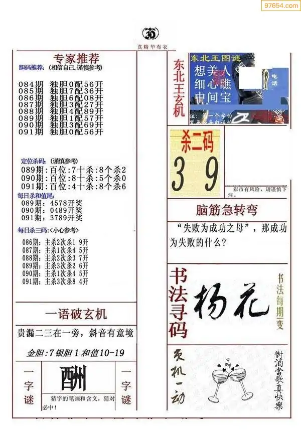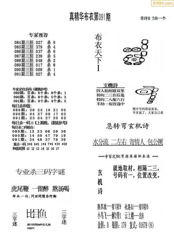 091期真版布衣神算专家推荐