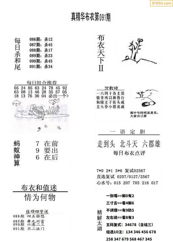 福彩091期3d真精华布衣+布衣早报(转载)