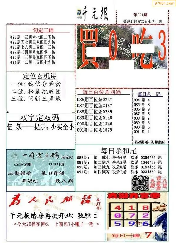 26年091期千元报每日推荐(新版)