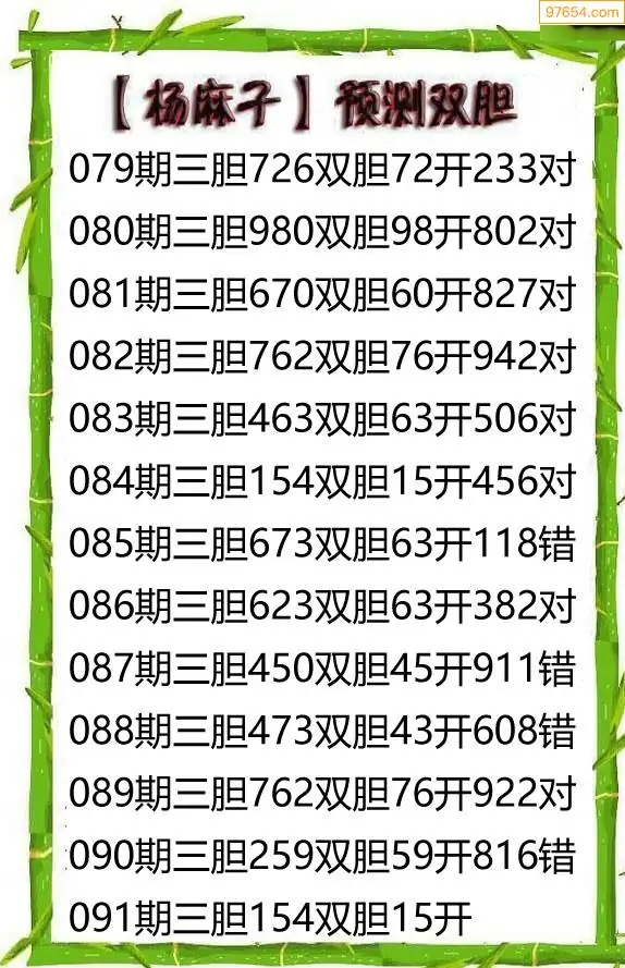 26091期杨麻子_福彩胆码计算方法