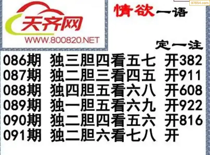 福彩3d左岸清风26年091期一语定一注