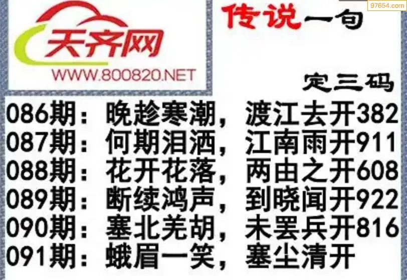 福彩3d26年091期字谜传说一句定三码