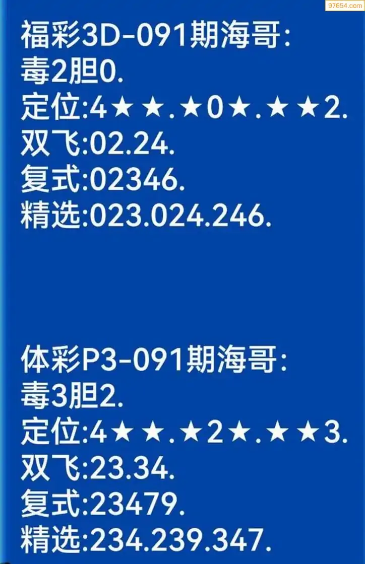 海哥福彩091期3d今日双胆