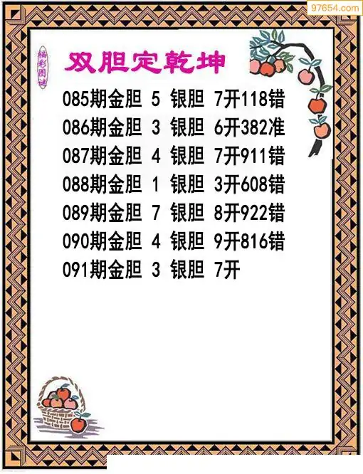 091期97654本站收集胆码出号预测
