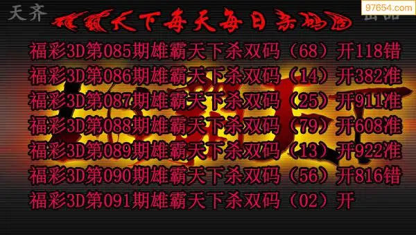 2026090期雄霸天下3D杀双码