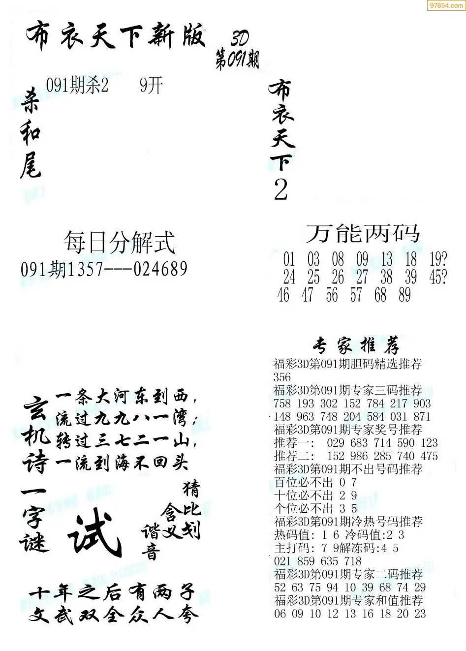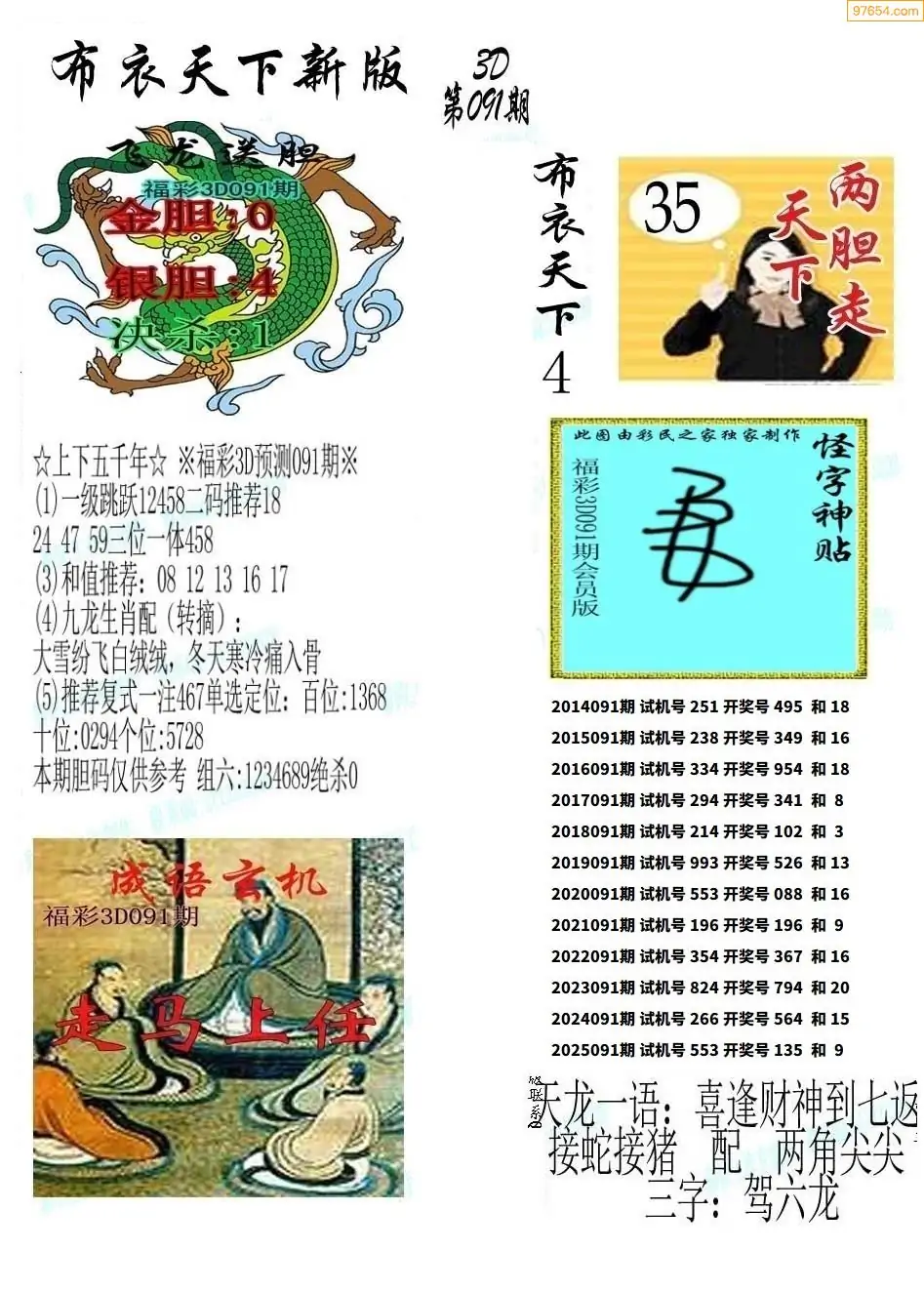 (2)26年091期本期3d图迷汇总_福彩3D图谜总汇图