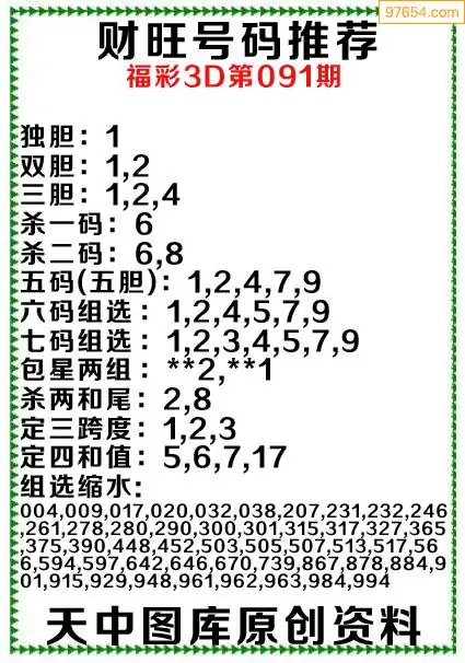 (3)2026091期3D预测总汇全图_福彩3d图谜字谜总汇