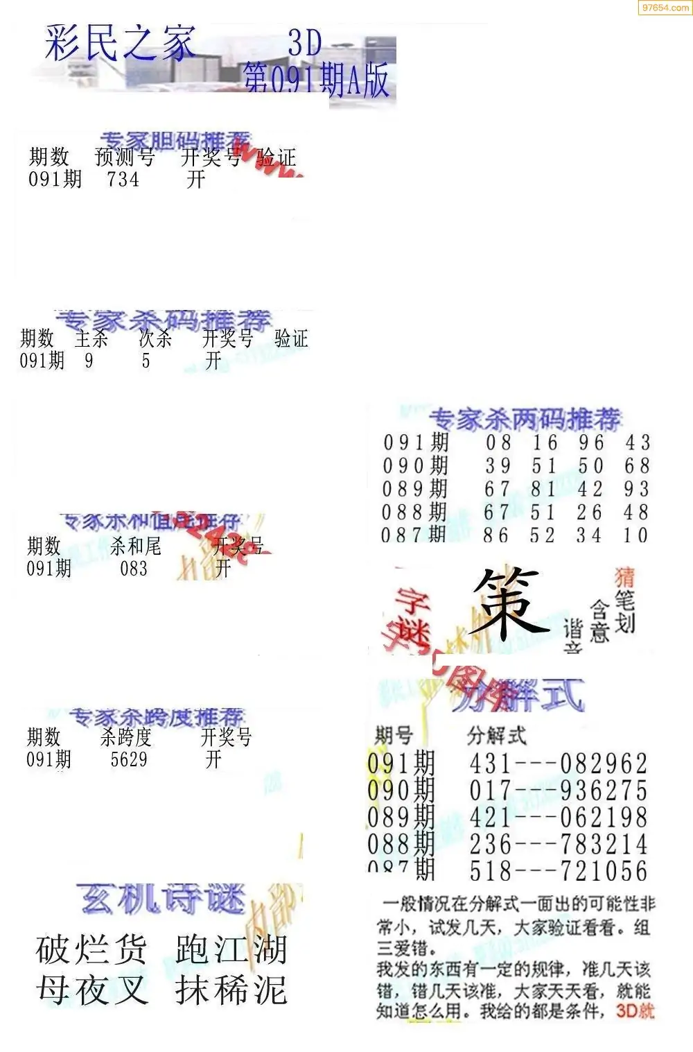 (3)2026091期3D预测总汇全图_福彩3d图谜字谜总汇